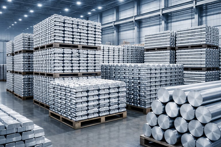 El aluminio es un metal no ferroso esencial para la industria moderna por su ligereza, resistencia a la corrosión y alta conductividad. Comercializamos aluminio primario y productos procesados para manufactura, construcción y exportación.